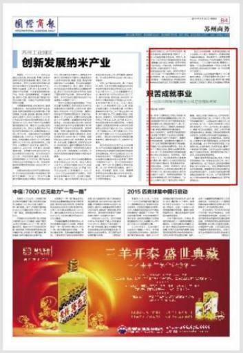 2015年6月获得由苏州市人民政府颁发的
