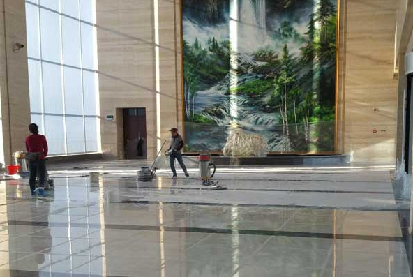 1、石材地面完全面清理:进行石材地面结晶处理前,铺贴完成面整体平整,无色差,每块石材之间对角平齐,地面进行整体的清理,用干燥清洁的地拖清理干净,地面无沙粒、杂质。