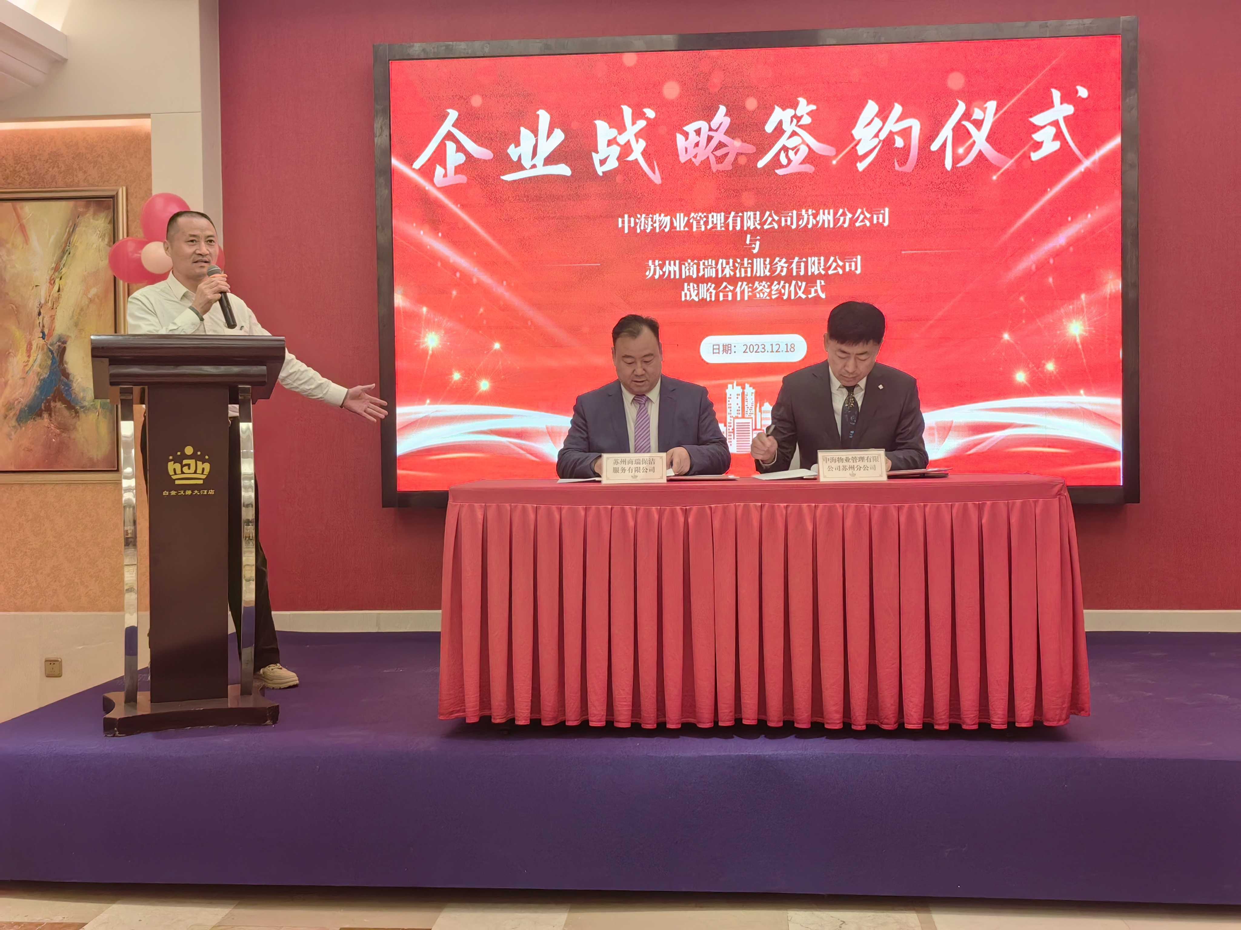 恭喜苏州中海物业管理有限公司与苏州商瑞保洁服务有限公司签订战略合作协议